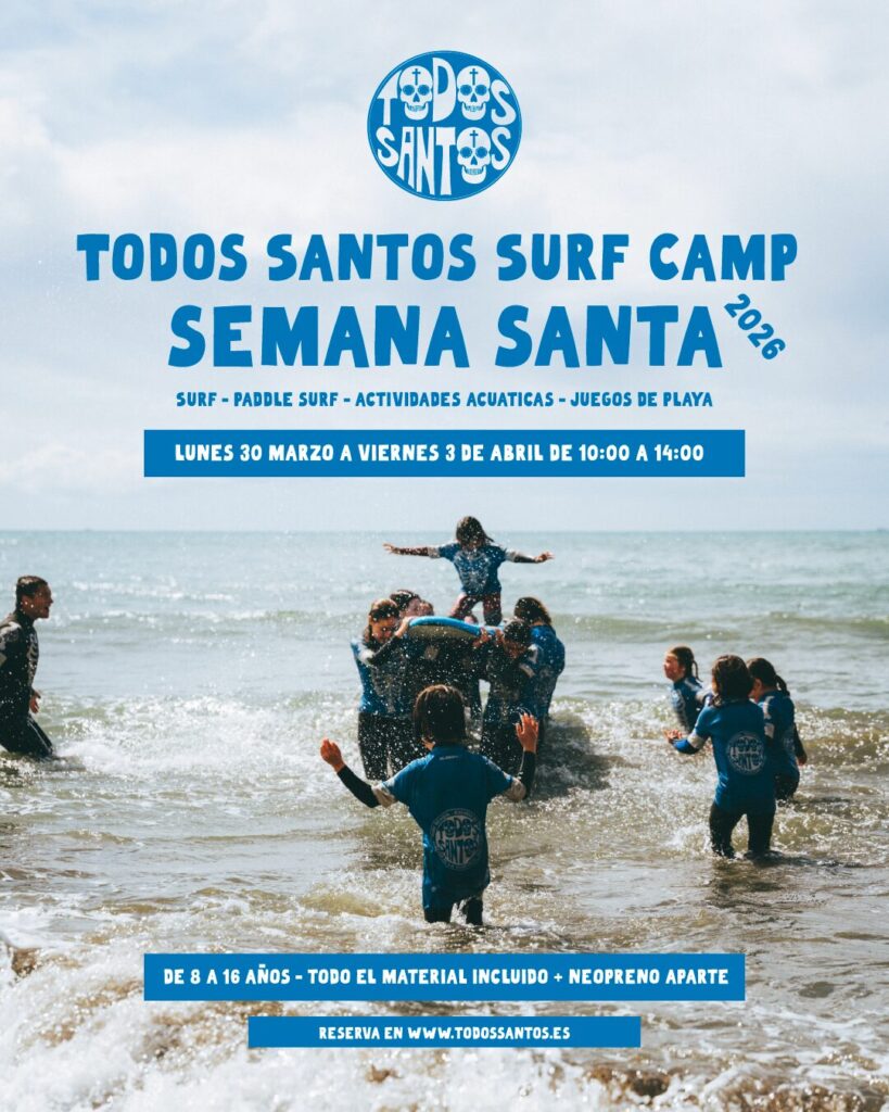 El campamento de surf tendrá lugar la próxima Semana Santa 2026 en los días lunes 30 de marzo a viernes 3 de abril, en los horarios de 10:00h a 14:00h.